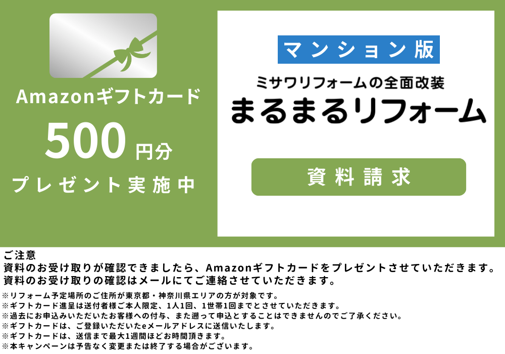 【マンション】まるまるリフォーム 資料請求【Amazonギフトカード500円分プレゼント】